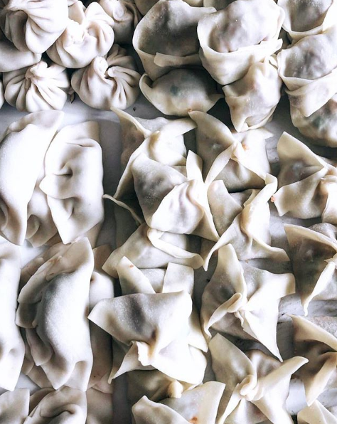 Spoon about 1/2 tbsp of mixture onto the dumpling wrapper. Now explaining how to wrap the dumpling is difficult through words so I have attached a video below on different ways to shape your dumplings.
